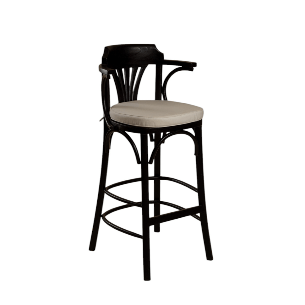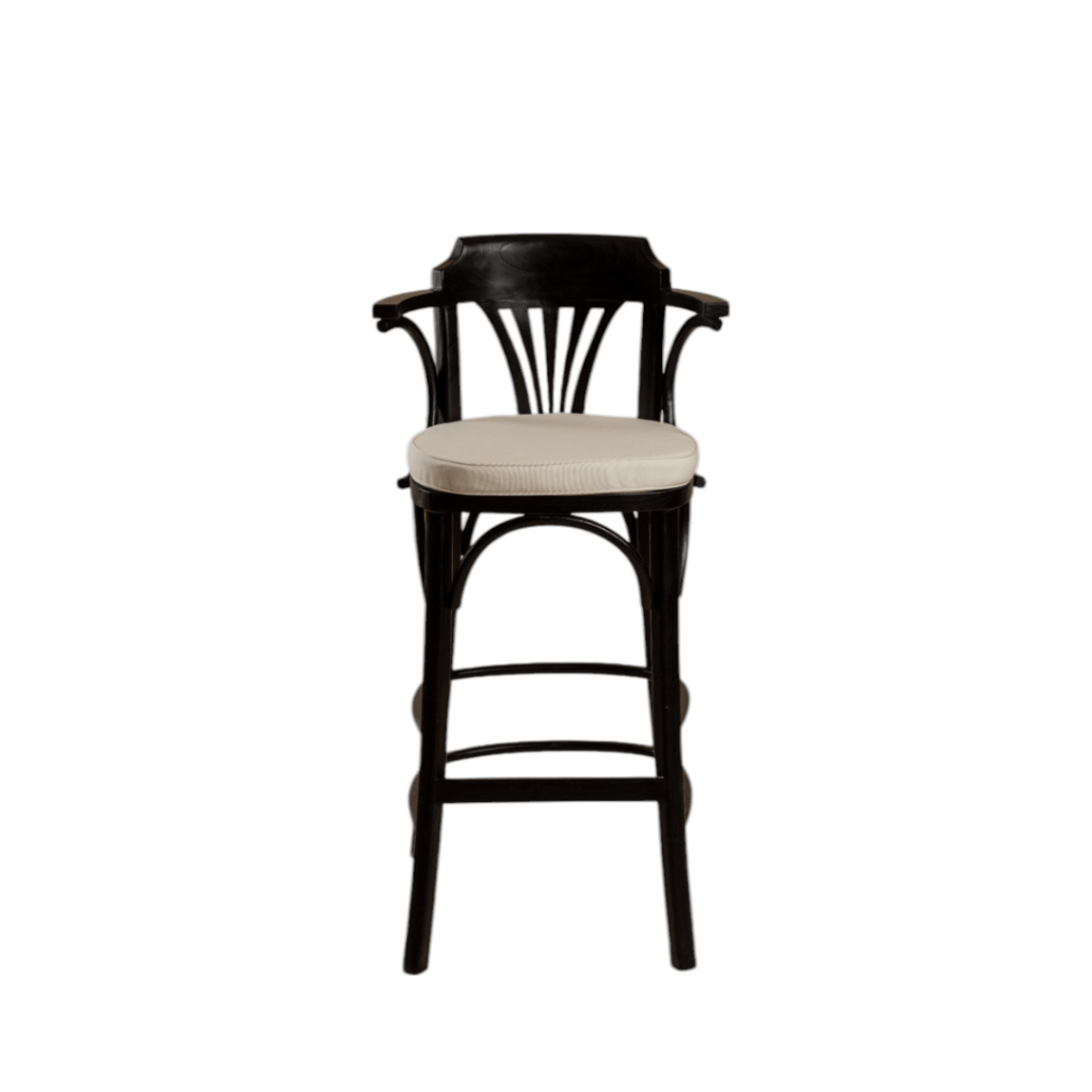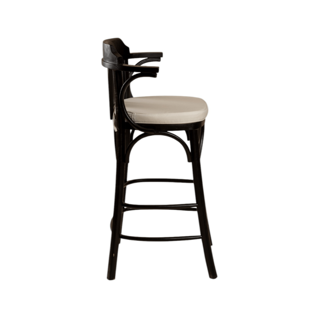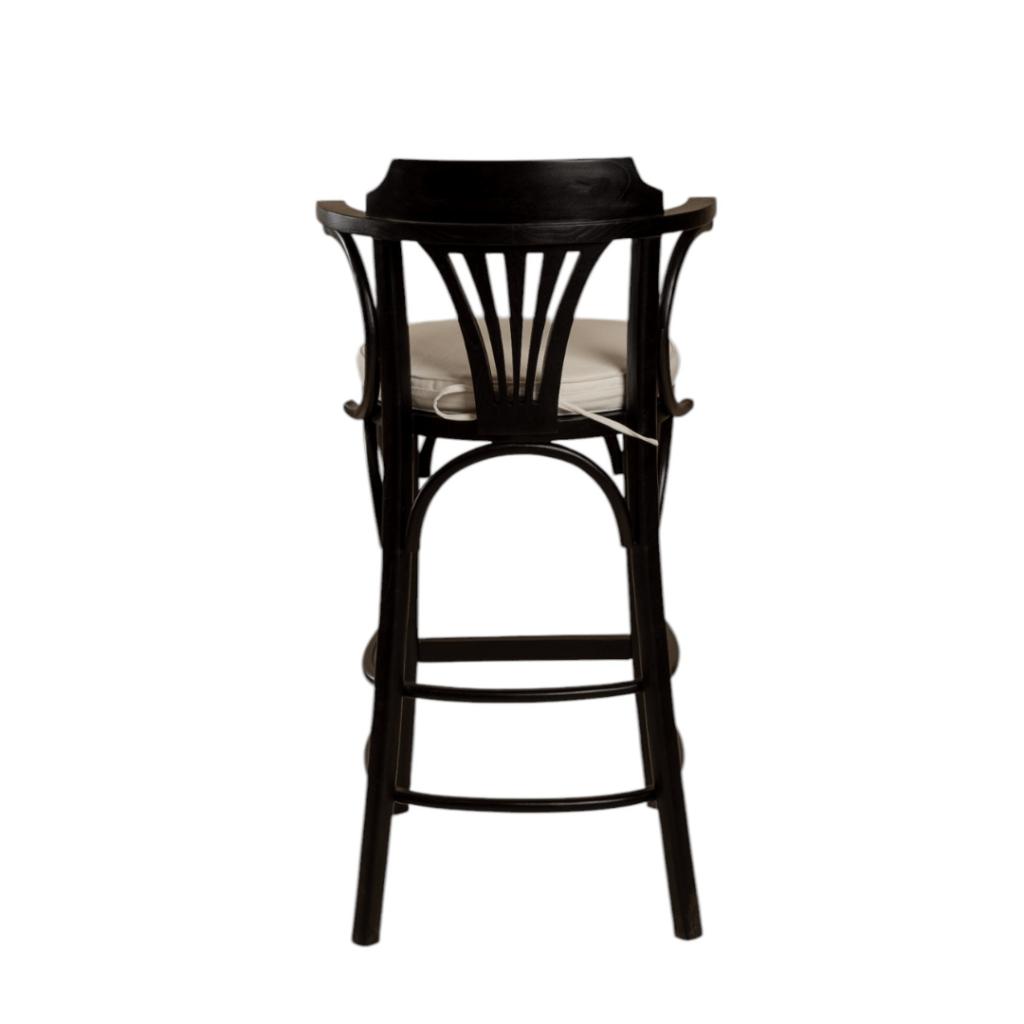This distinctive retro-designed bar stool is made of solid teak wood. It is a French classic, to which the black color gives it more elegance and sophistication.