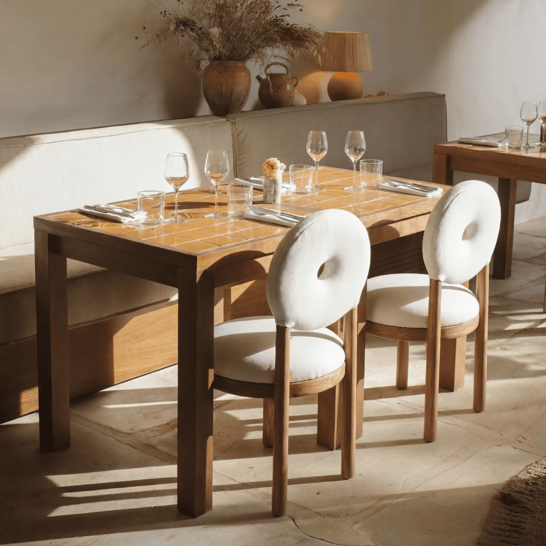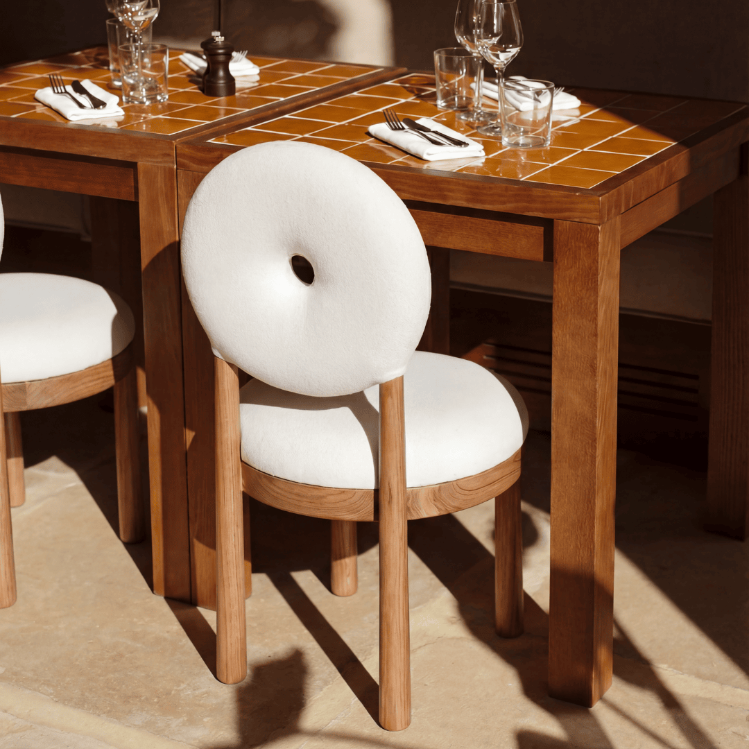 The structure of the chair is made of teak wood, a durable and resistant material.