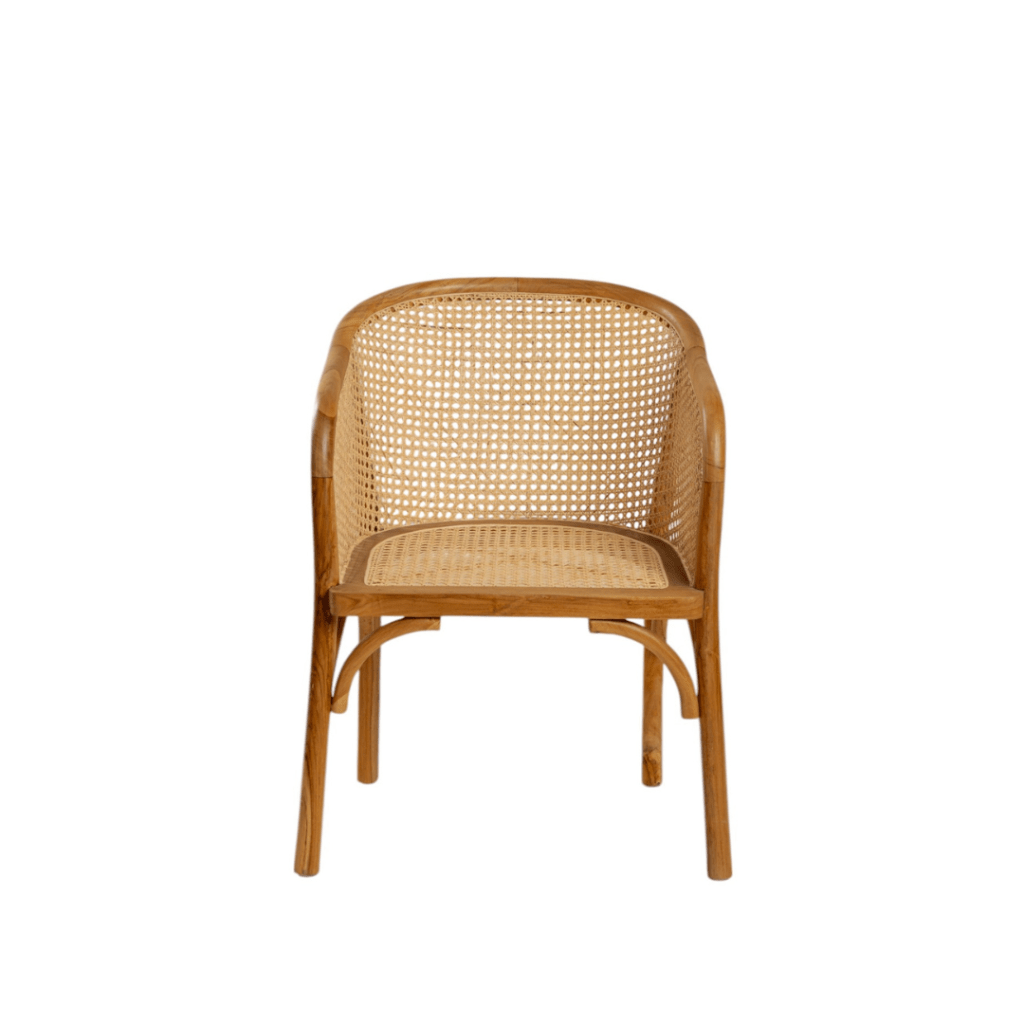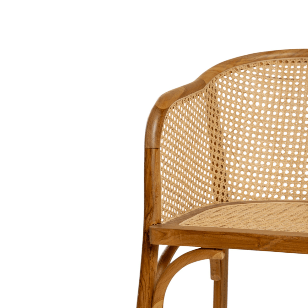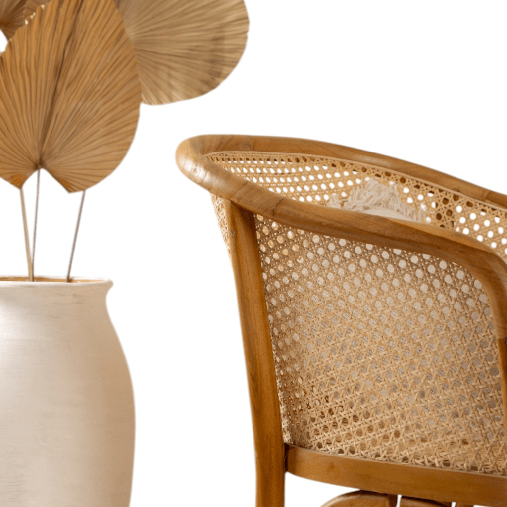 Fabiana arm-chair is made of a combination of teak and rattan. The graceful and delicate chair blends perfectly with both the dining room and the living room.