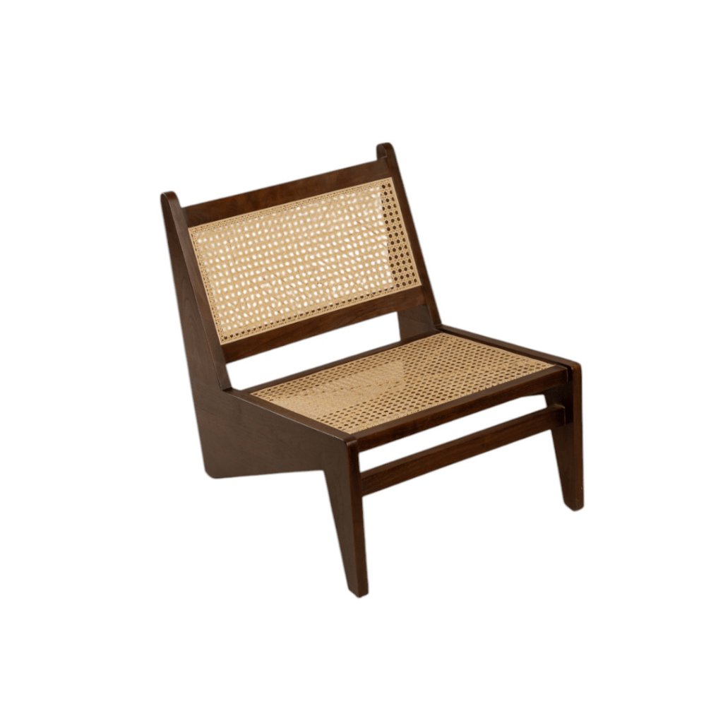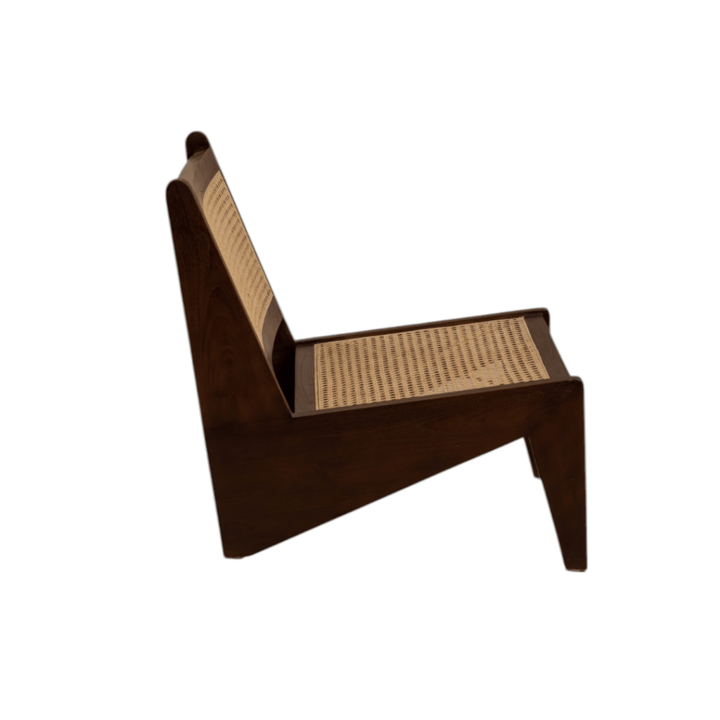 Kangaroo chairs designed by Pierre Jeanneret, it is crafted from solid teak and intricately braided cane. These iconic chairs became integral to the city’s furniture landscape.