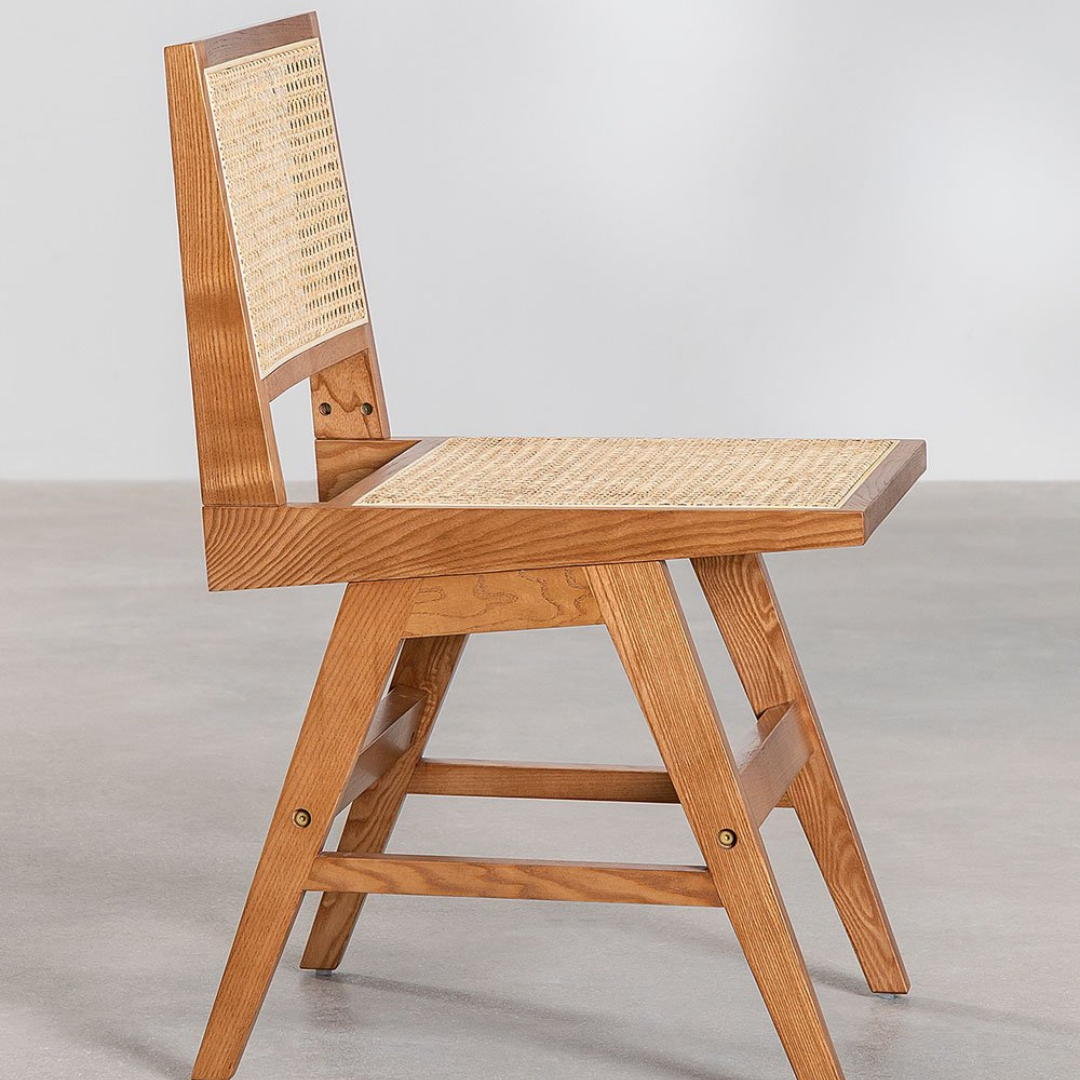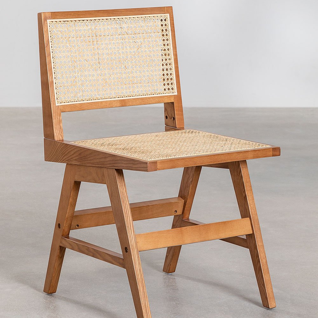 It is made of teak wood, a material highly valued for its resistance, and has a rattan back and seat finished with the cannage technique, which make it a very comfortable and ergonomic chair.