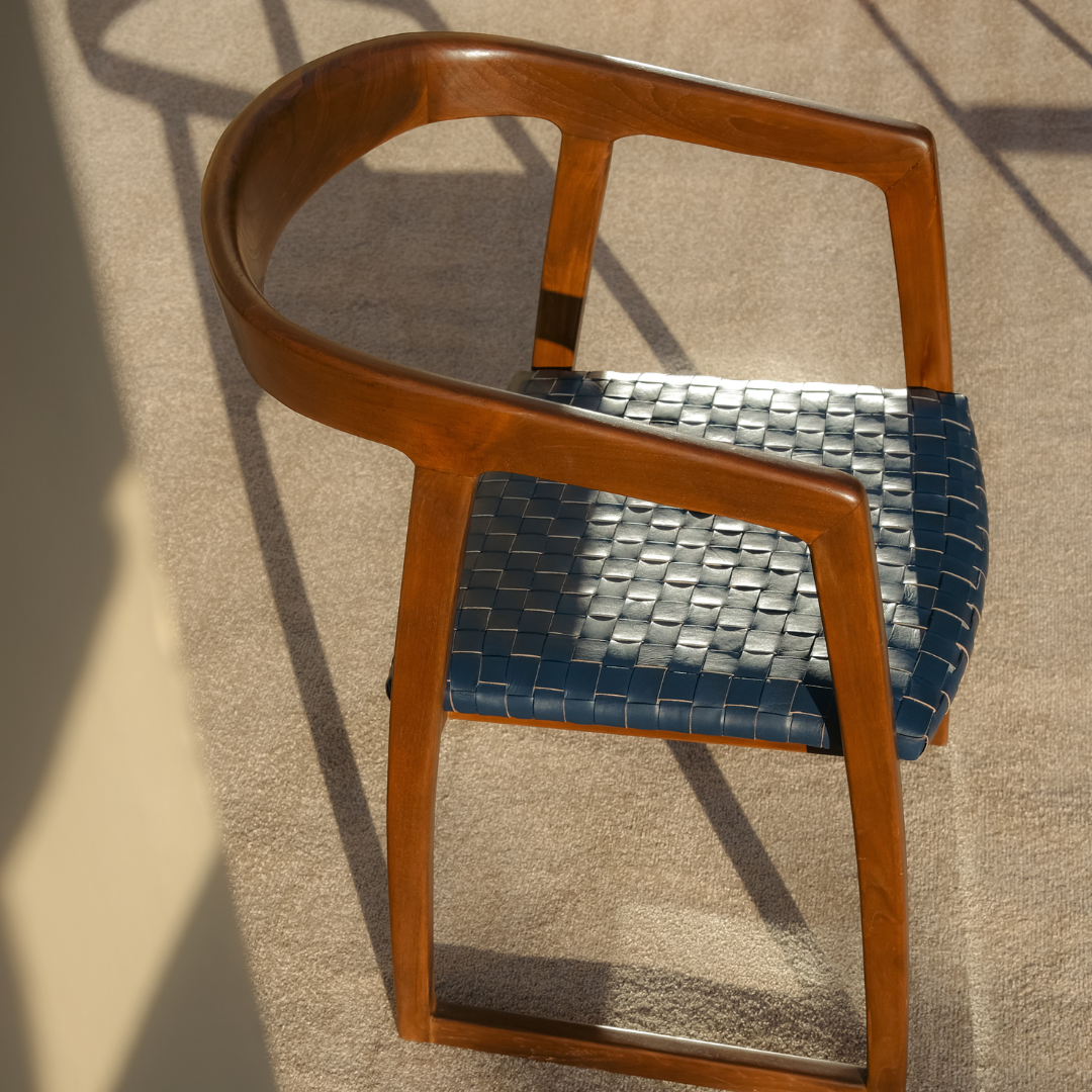 Its striking design features a padded woven genuine leather seat and a curved back that exudes a sense of luxury and refinement. Colors: original, chocolate.