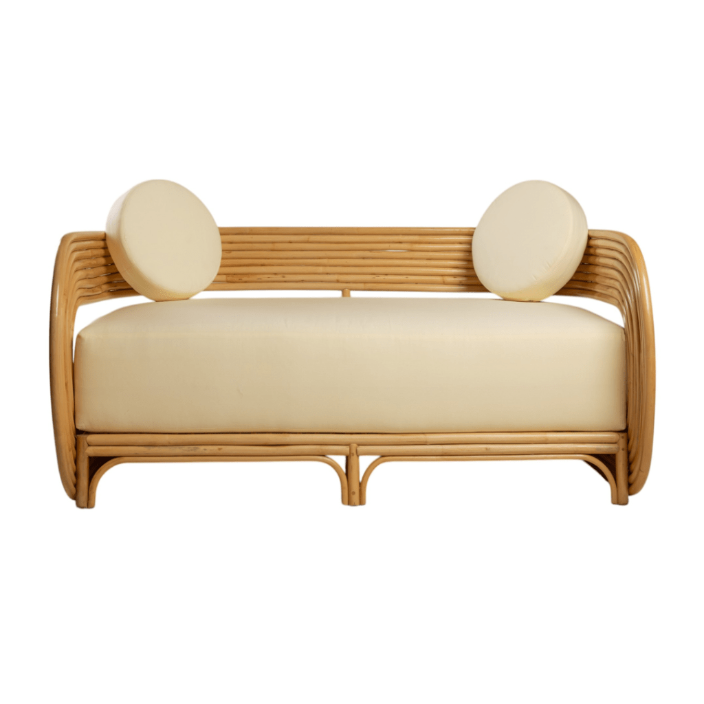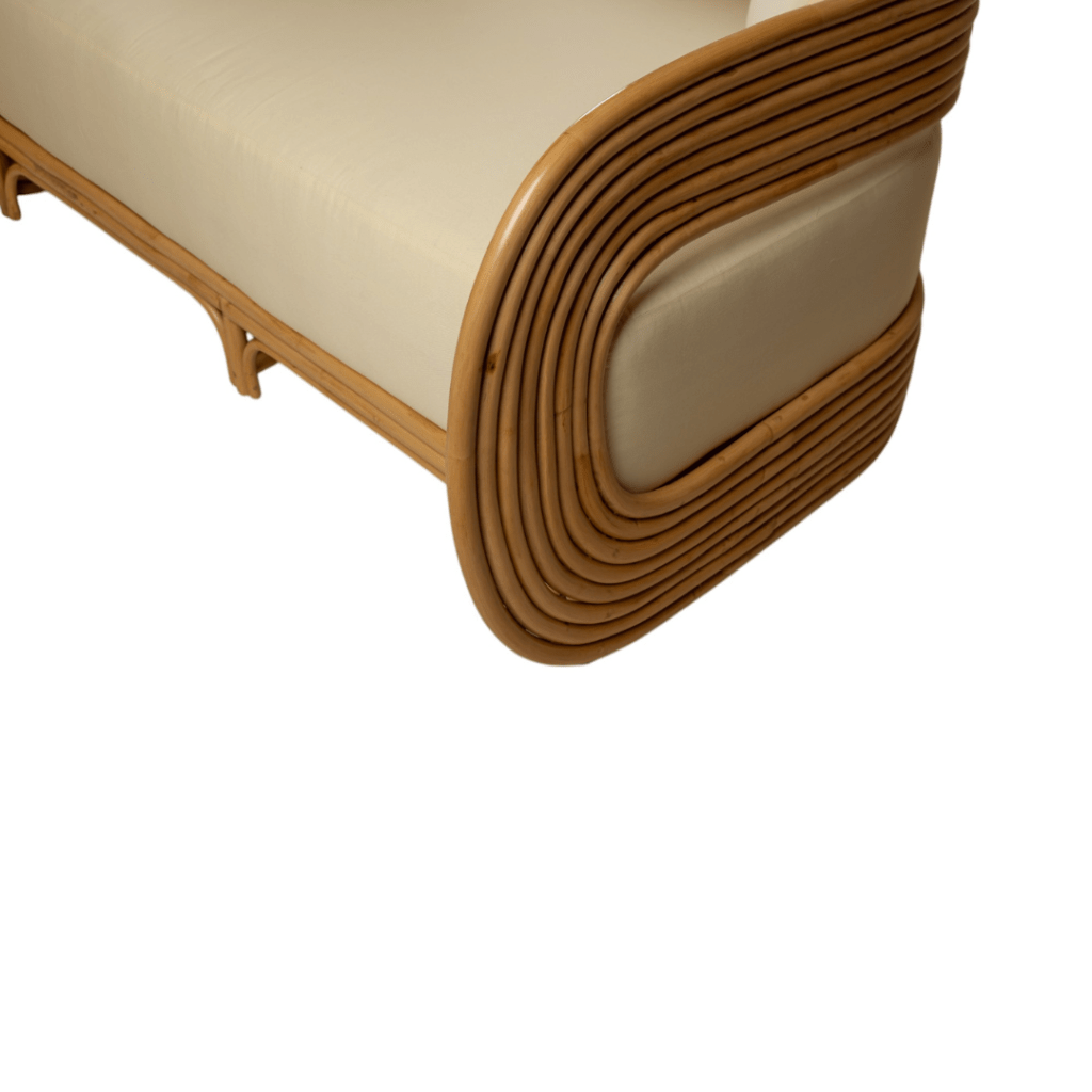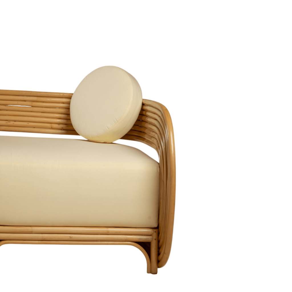 Introducing natural materials to your living area and benefit from their versatility, durability and appearance. This rattan sofa brings a lot of “Boho” vibes to a living room, a balcony or a conservatory. Its armrests are highly finished, while the rattan legs ensure stability. Soft and comfy cotton cushions have removable cases for easier maintenance. Keep the piece indoors during the winter season and make sure you move it outdoors only when the weather clears up, avoiding rain, humidity and long exposure to sunlight.