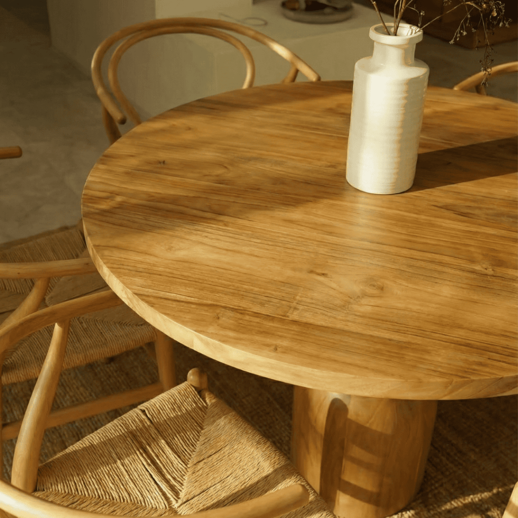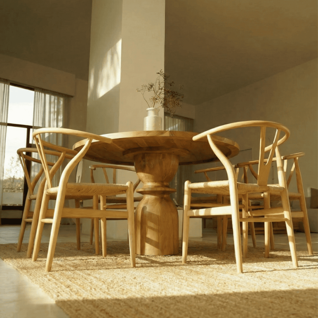 Dining table is crafted from solid rattan wood, reflecting the rich heritage and natural elegance of Balinese design.