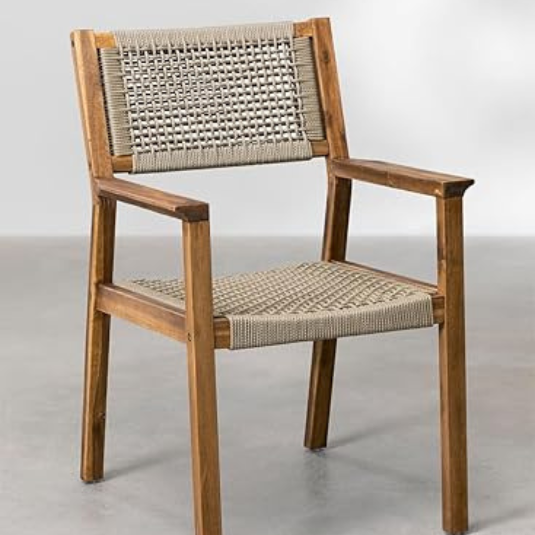 Combine design and functionality with the teak wood braided rope dining Chair with Armrests.
