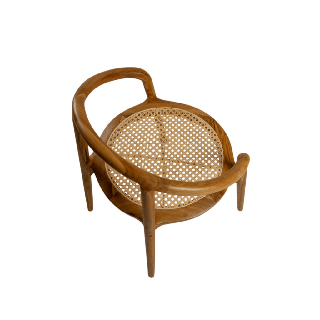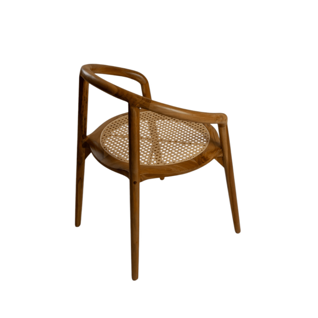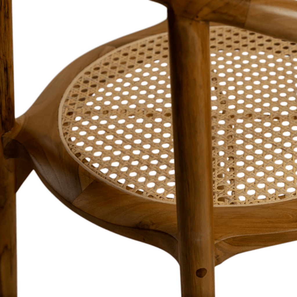 This lightweight teak and rattan chair is perfect for both the dining room and the bedroom. It is also great for use in restaurants and cafes.